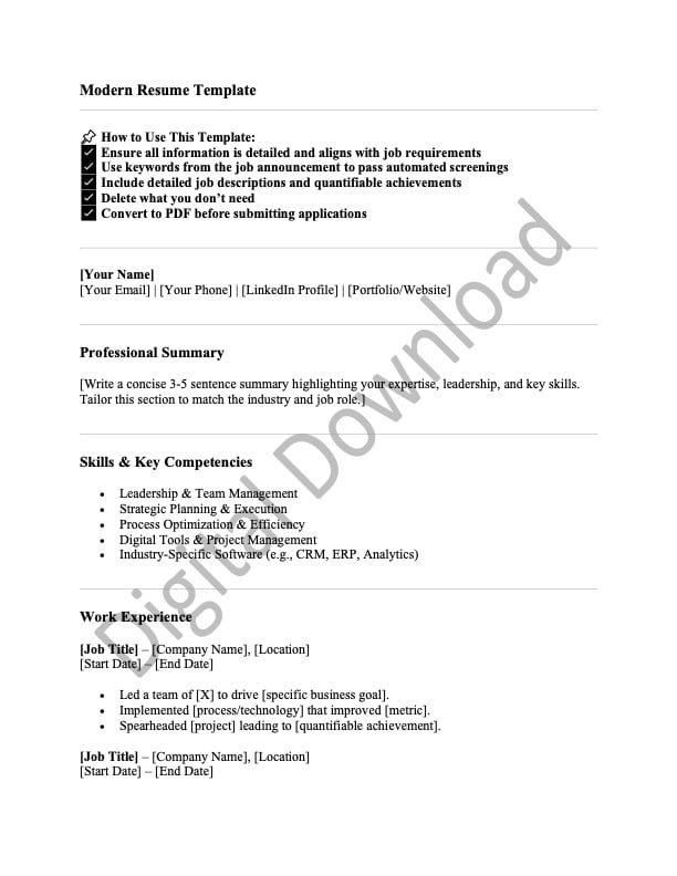 A sleek and modern resume template designed for corporate professionals, business leaders, and executives.